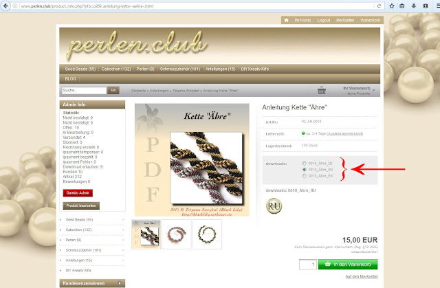 10. Ebenso erscheint der Link für den Download der PDF-Datei in Ihrem Profil auf www.perlen.club. Sehen Sie bei dem Verlauf Ihrer Bestellungen nach.